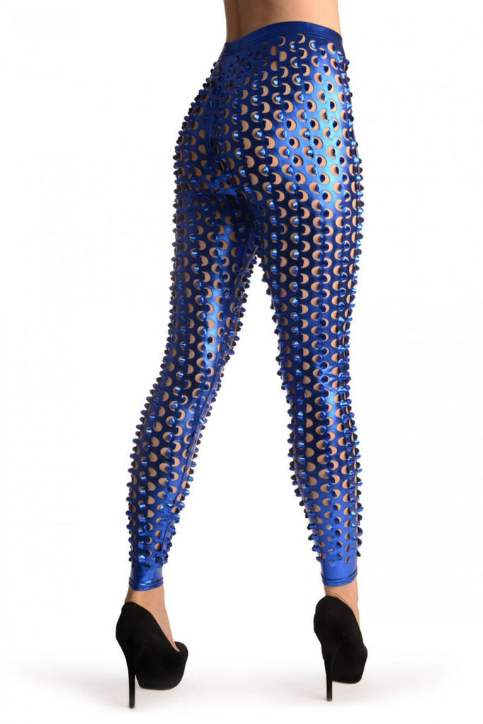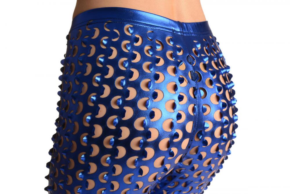 Blue 3D Cut Through Faux Leather Spikes - Leggings