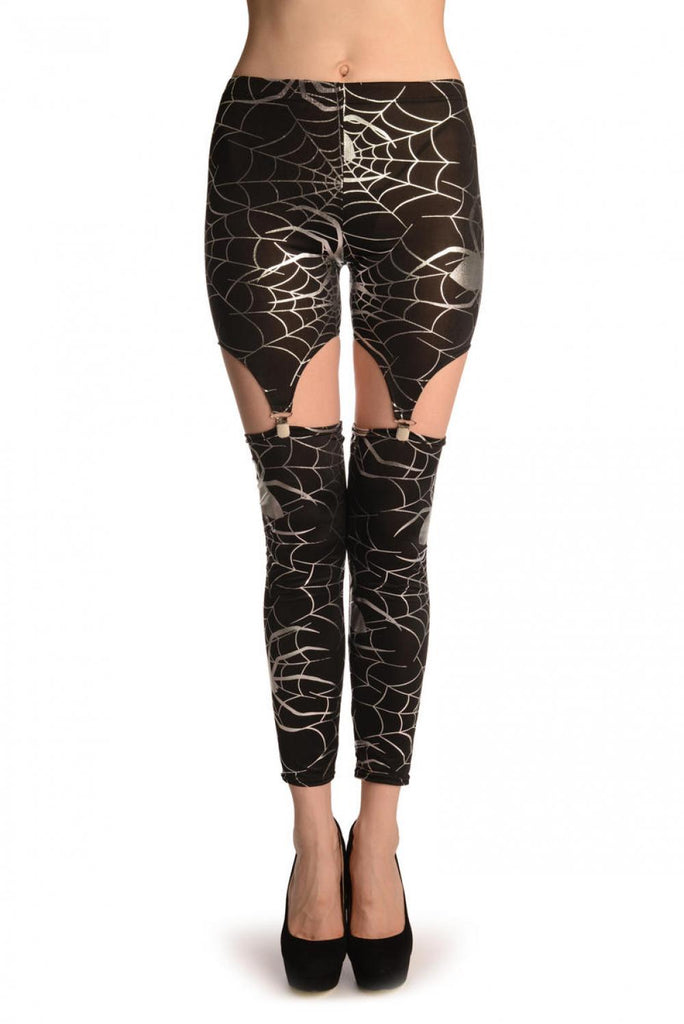 Silver Cobweb On Black Suspender Clip On Leggings (Halloween)