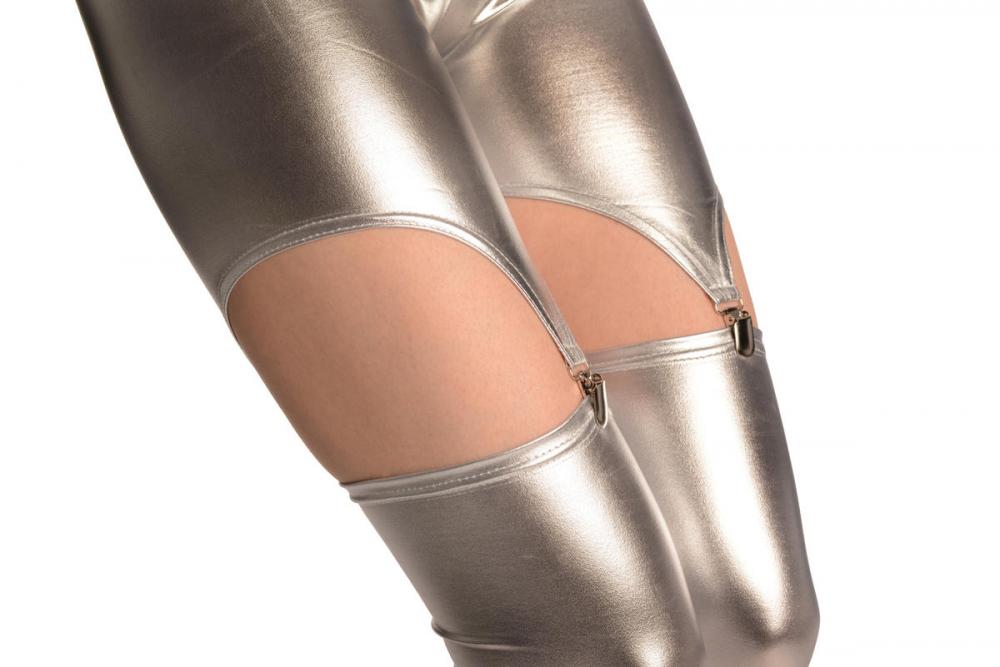 Silver Faux Leather Suspender Clip On Leggings - Leggings