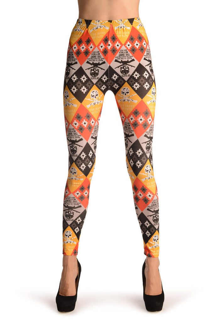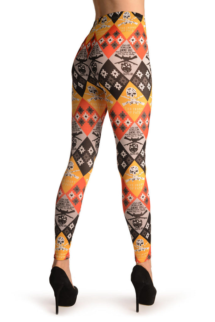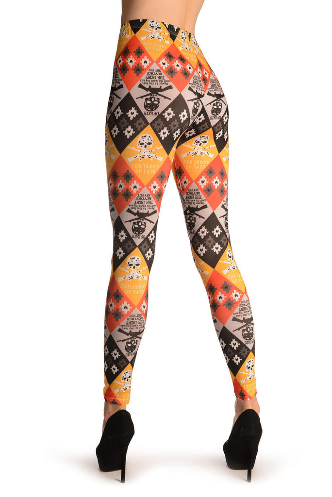 Beige Orange Blue & Brown Aztec Jacquard Knit Print - Leggings