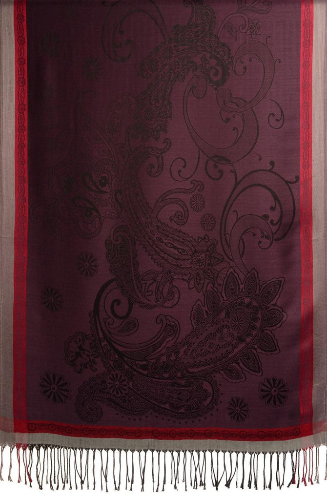 Red Frame & Paisleys On Dark Purple Pashmina Feel With Tassels