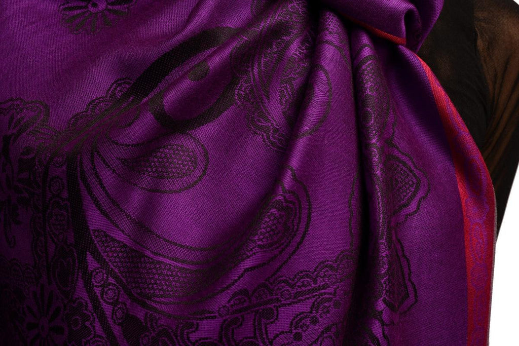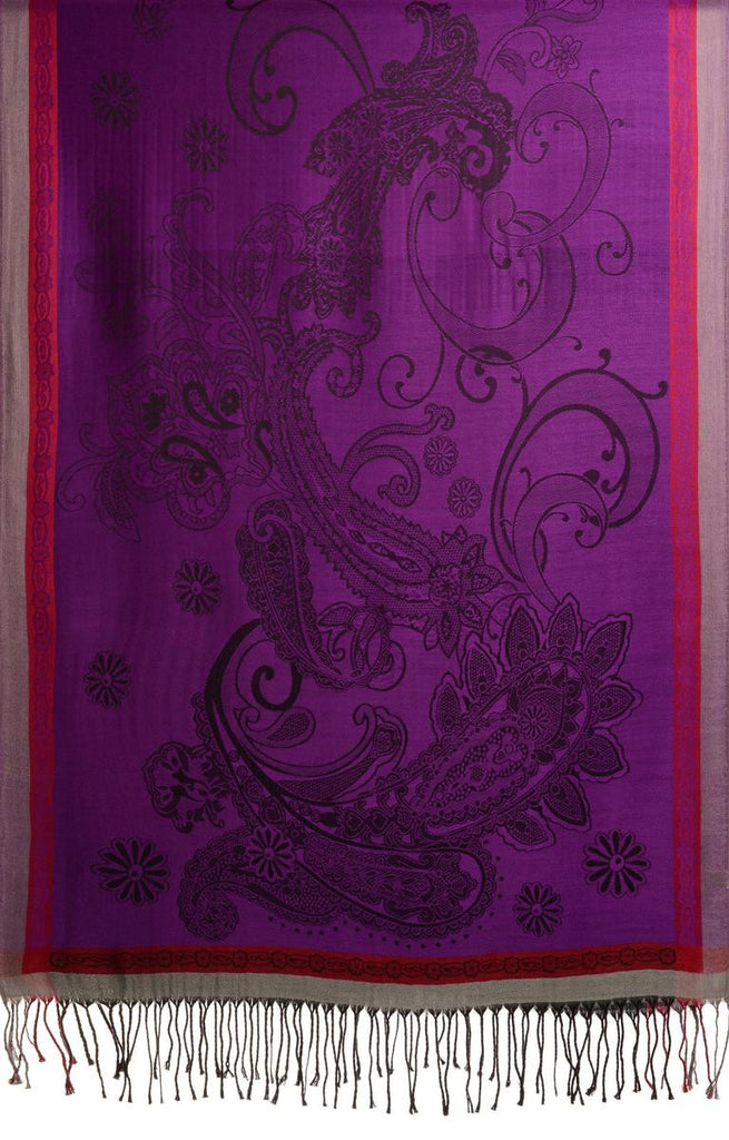 Assimetrical Ornaments On Purple Pashmina With Tassels - Scarf
