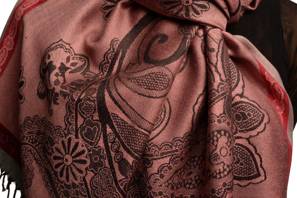 Assimetrical Ornaments On Dark Red Pashmina With Tassels - Scarf