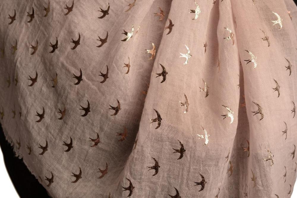 Red Gold Printed Swallows On Beige Scarf - Scarf