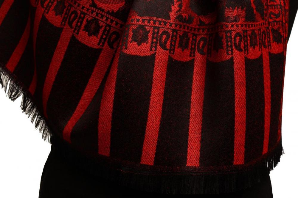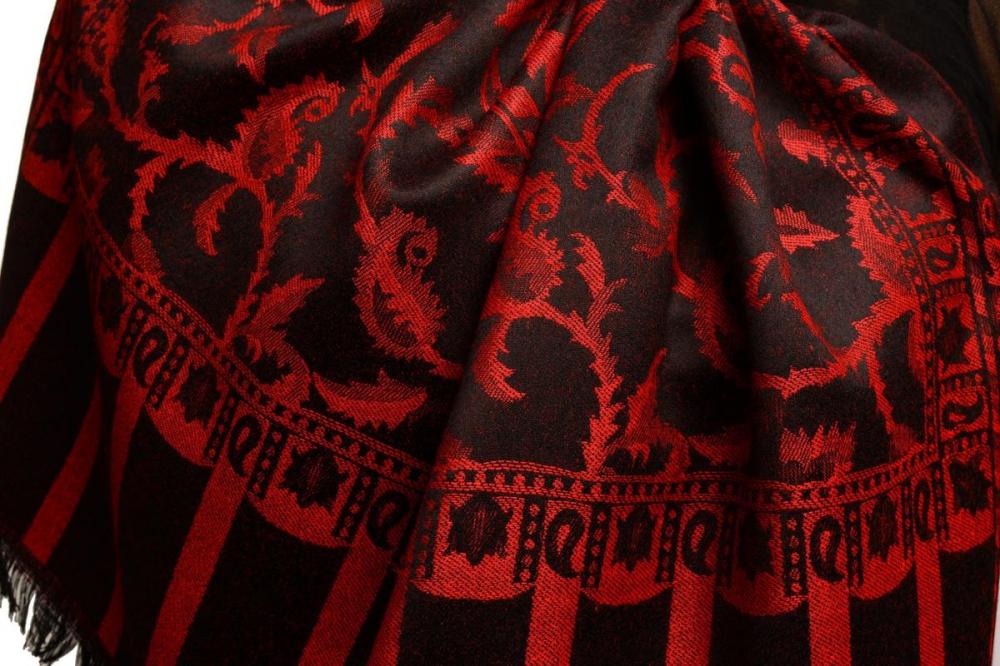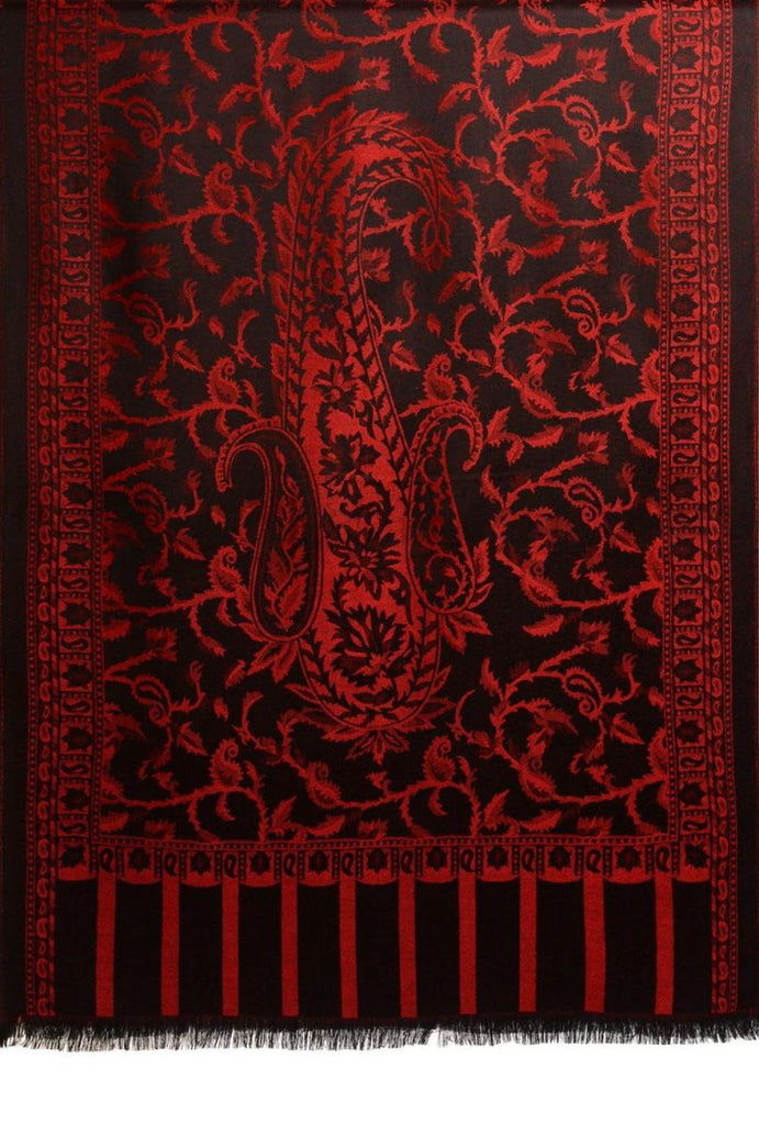 Red Large Paisley On Black Pashmina Feel - Scarf