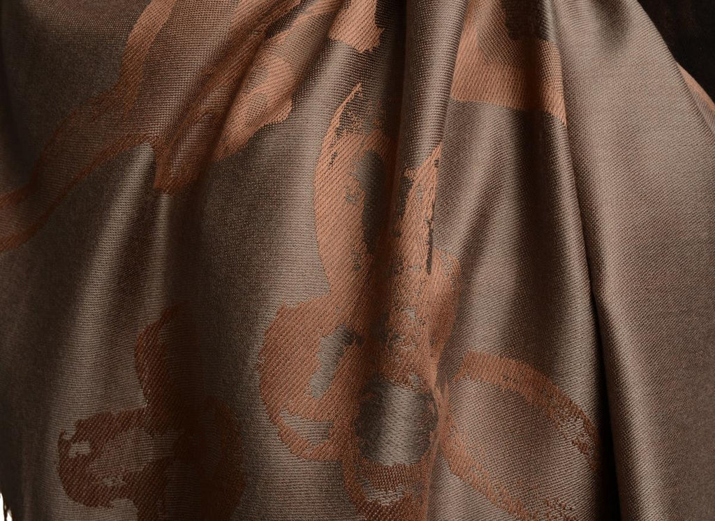 Assimetrical Ornaments On Brown Pashmina With Tassels - Scarf