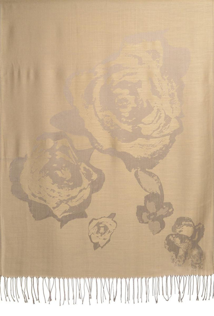 Roses On Grey Pashmina Feel With Tassels - Scarf