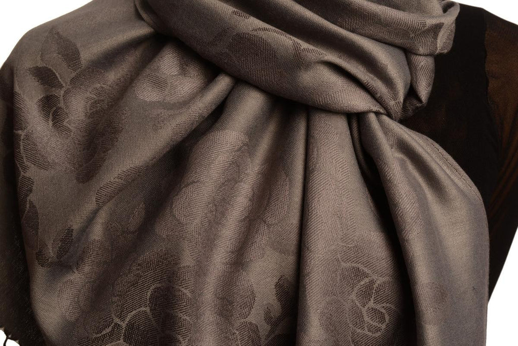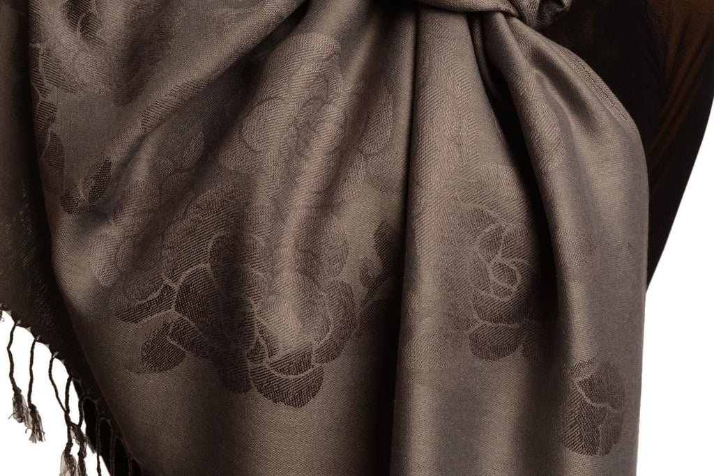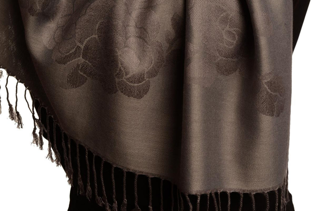 Assimetrical Ornaments On Brown Pashmina With Tassels - Scarf
