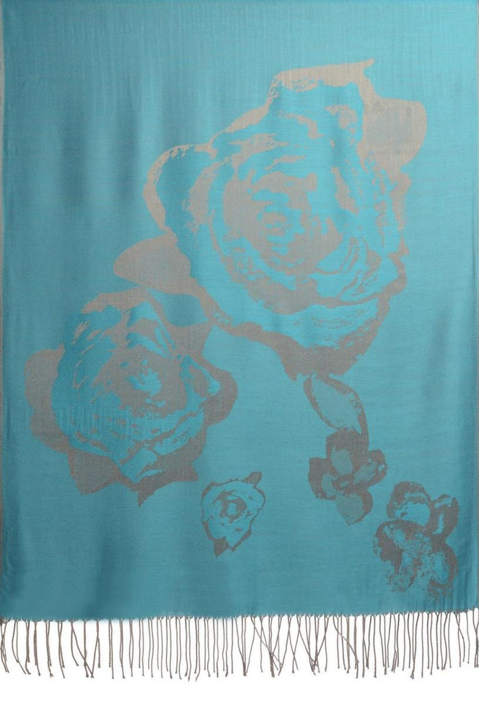 Roses On Maya Blue Pashmina Feel With Tassels - Scarf