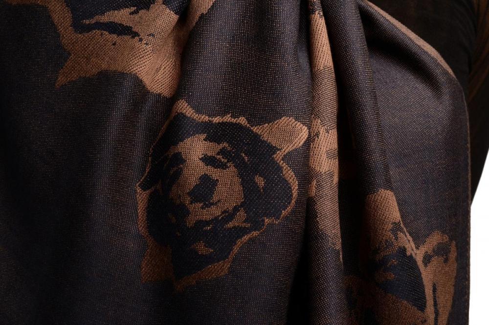 Assimetrical Ornaments On Brown Pashmina With Tassels - Scarf
