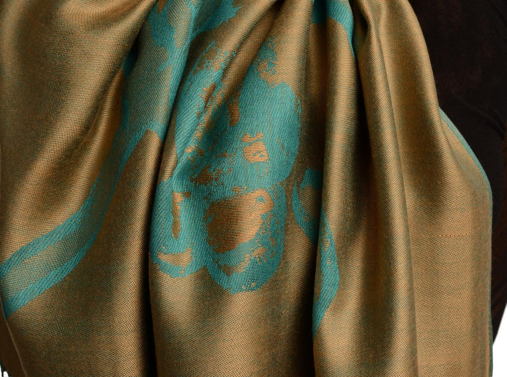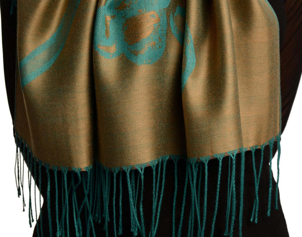 Assimetrical Ornaments On Brown Pashmina With Tassels - Scarf
