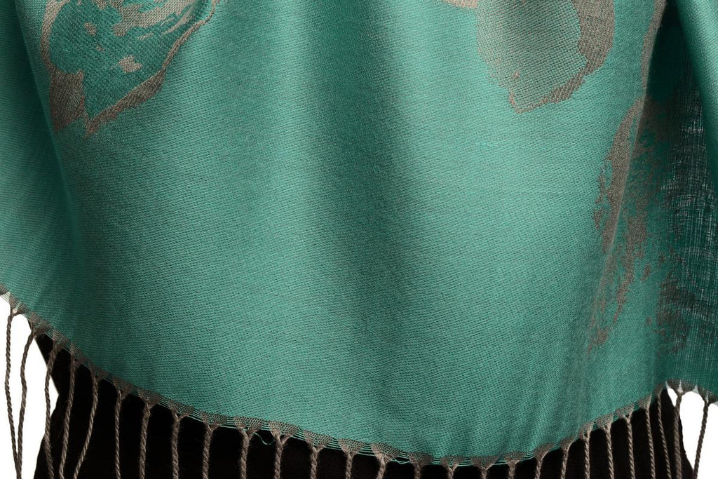Roses On Teal Blue Pashmina Feel With Tassels - Scarf