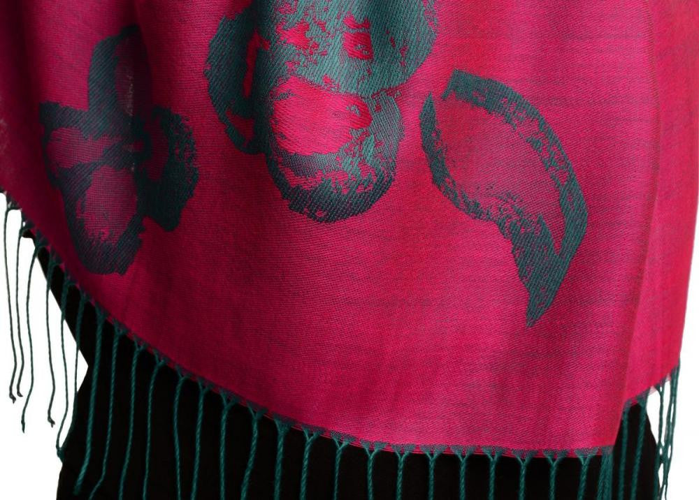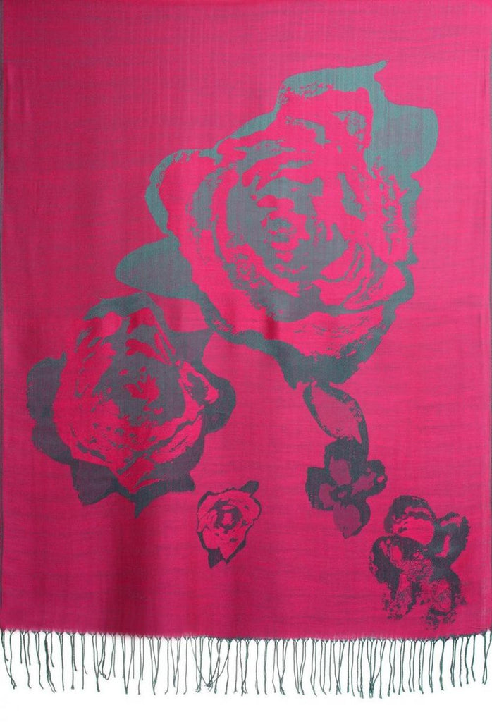 Roses On Violet Pink Pashmina Feel With Tassels