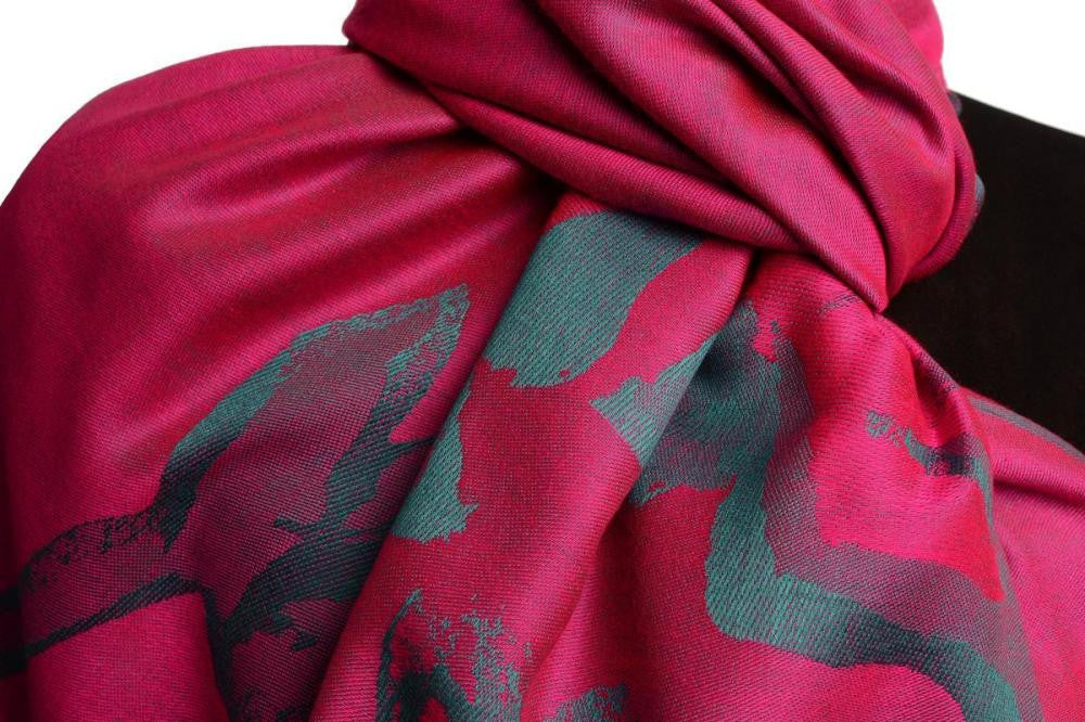Aztec Patern On Red & Magenta With Gold Lurex Pashmina With Tassels - Scarf