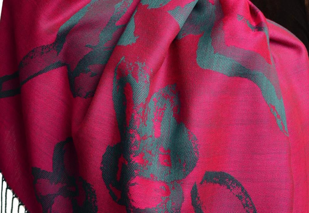 Aztec Patern On Puce Pink & Magenta With Gold Lurex Pashmina With Tassels - Scarf