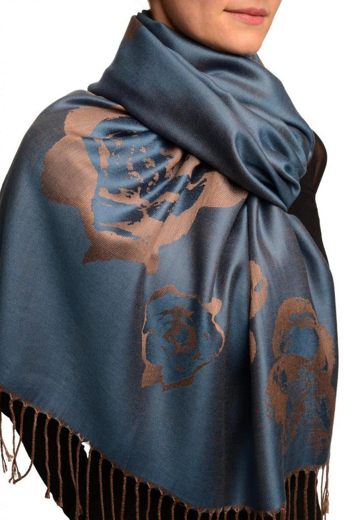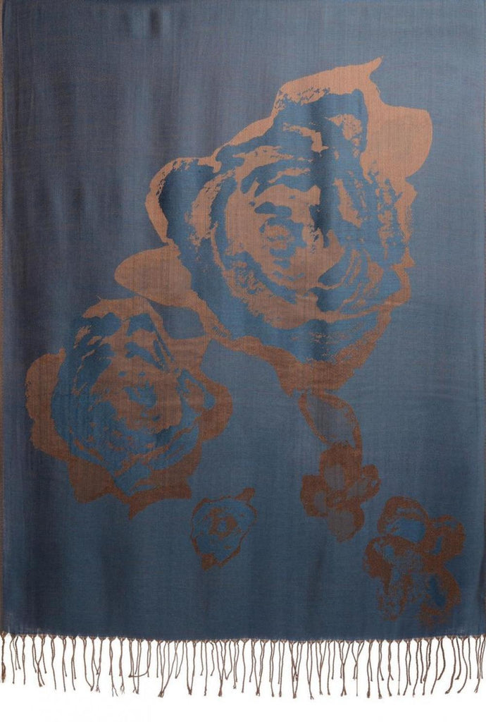 Roses On Yale Blue Pashmina Feel With Tassels - Scarf