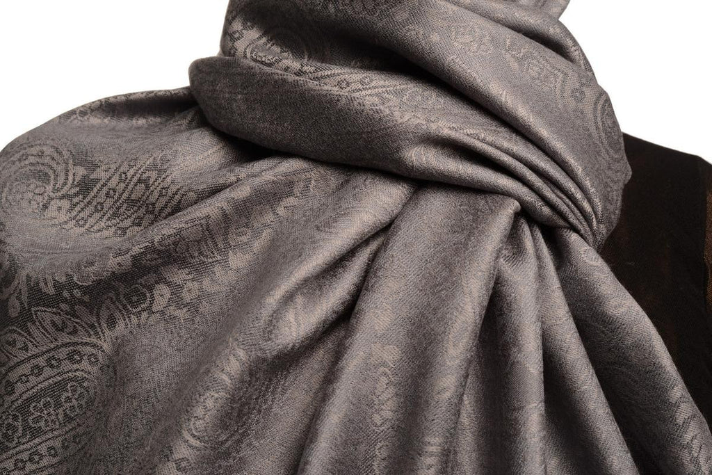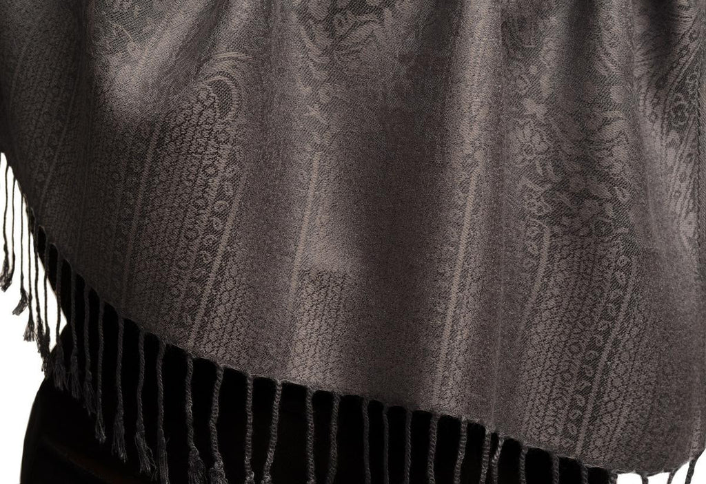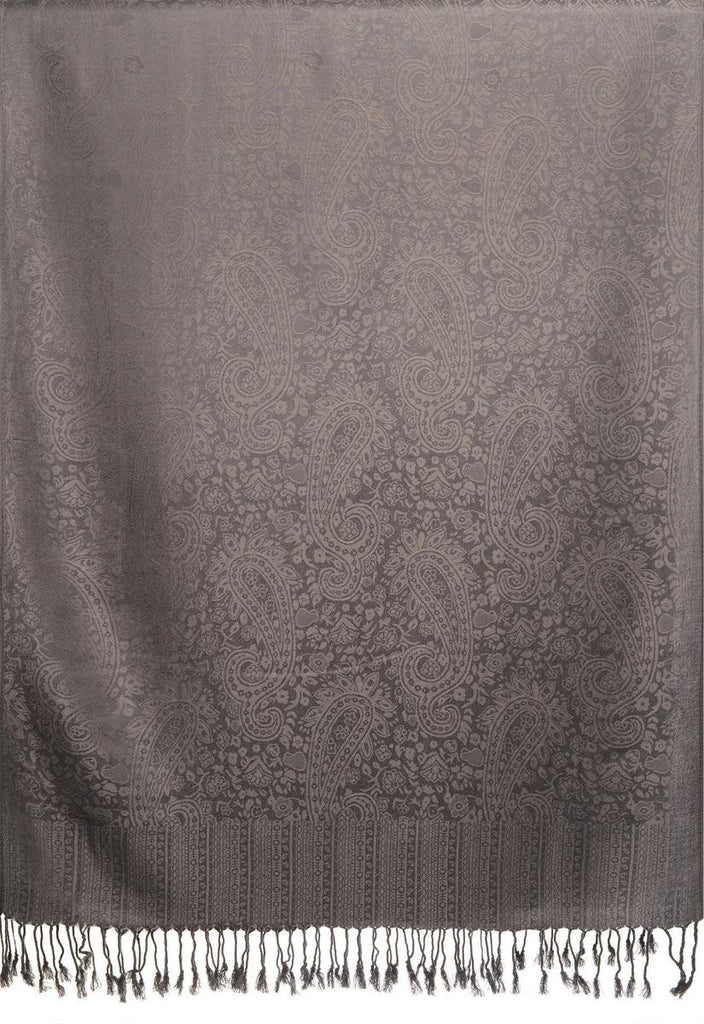 Slate Grey Paisleys Pashmina Feel With Tassels - Scarf