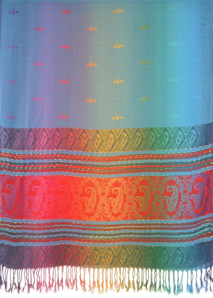 Small Clover On Blue Ombre Pashmina With Tassels - Scarf
