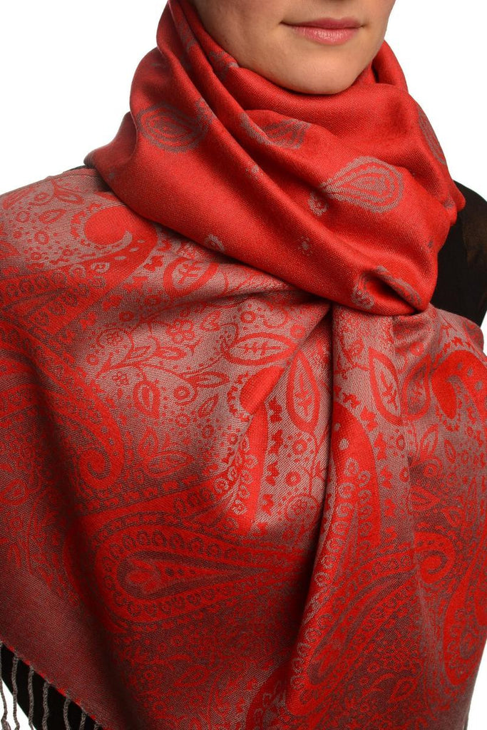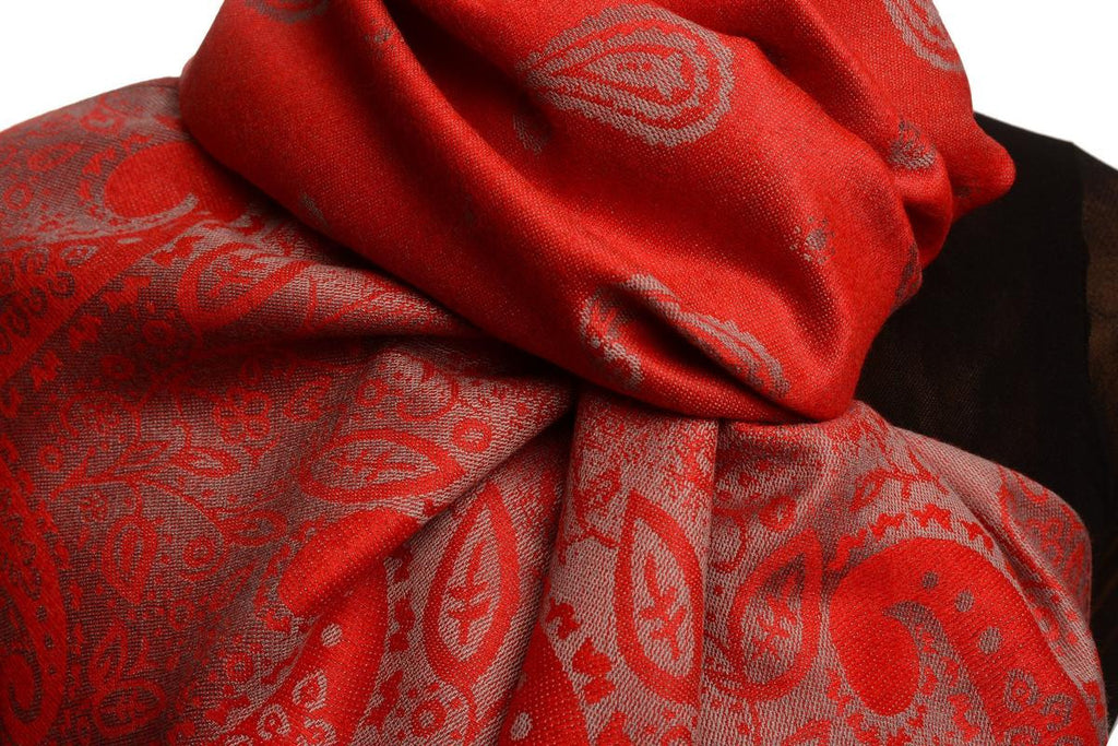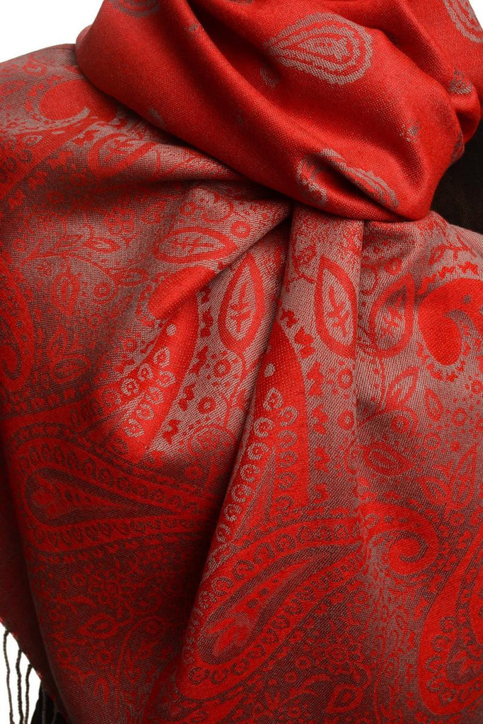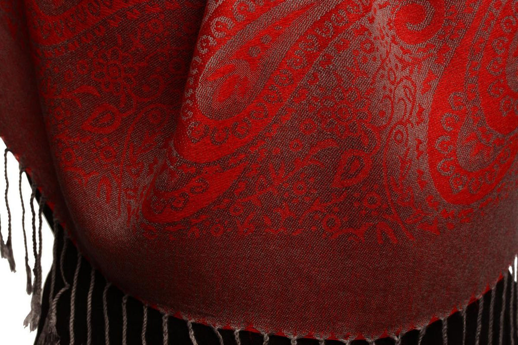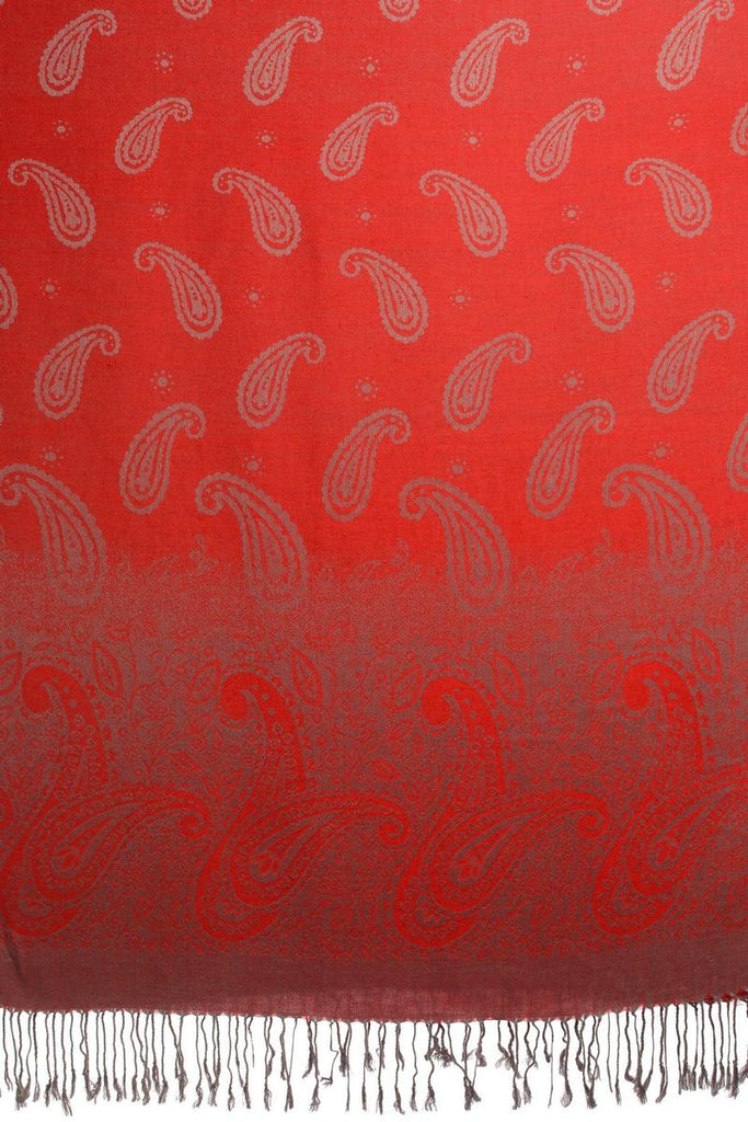 Small Paisley On Red Pashmina With Tassels - Scarf