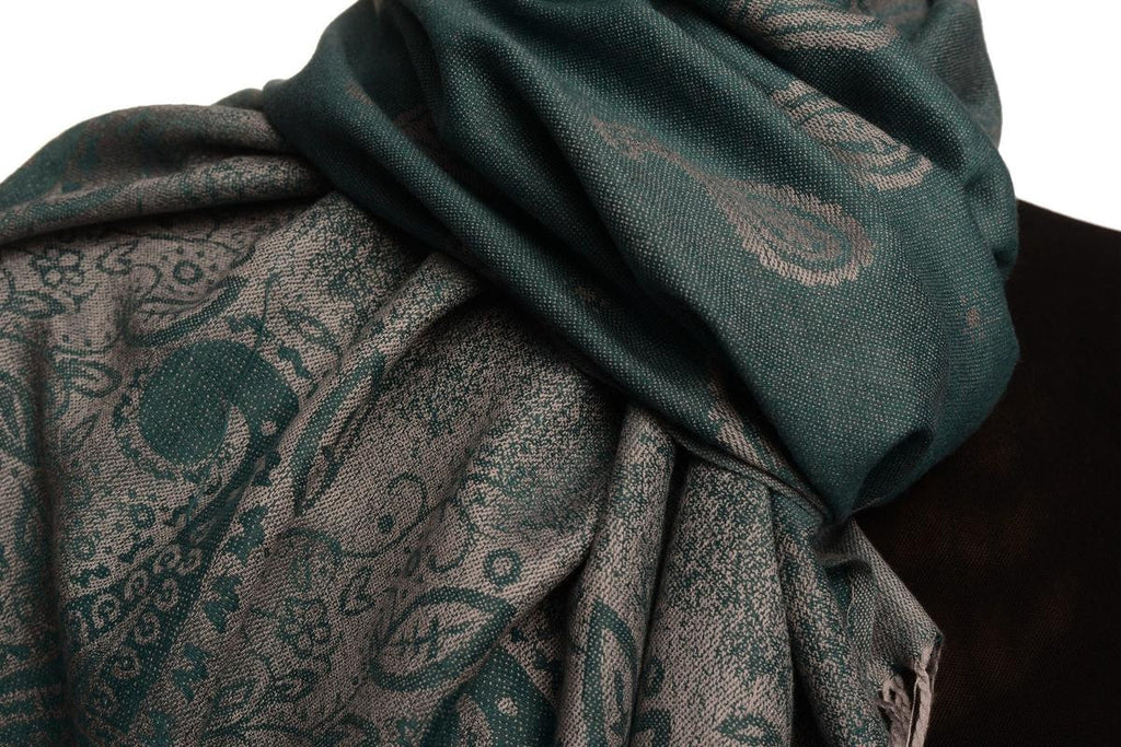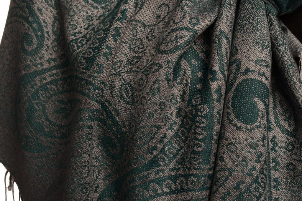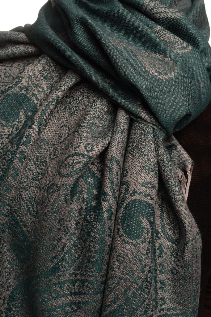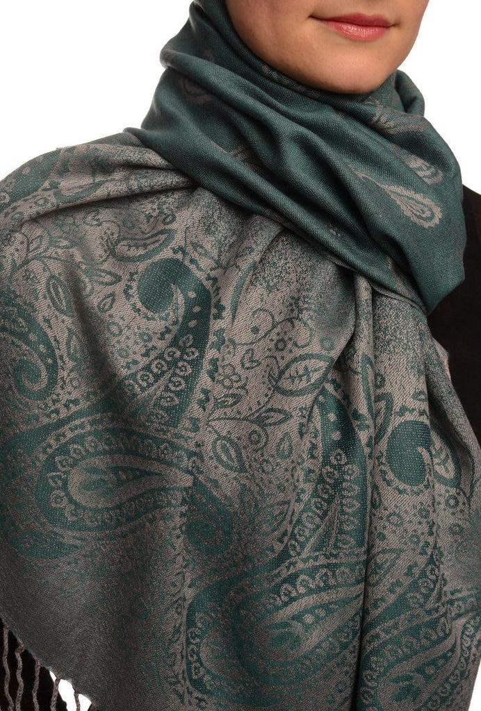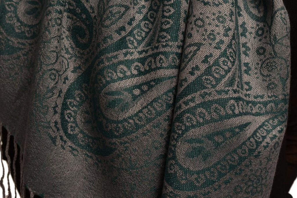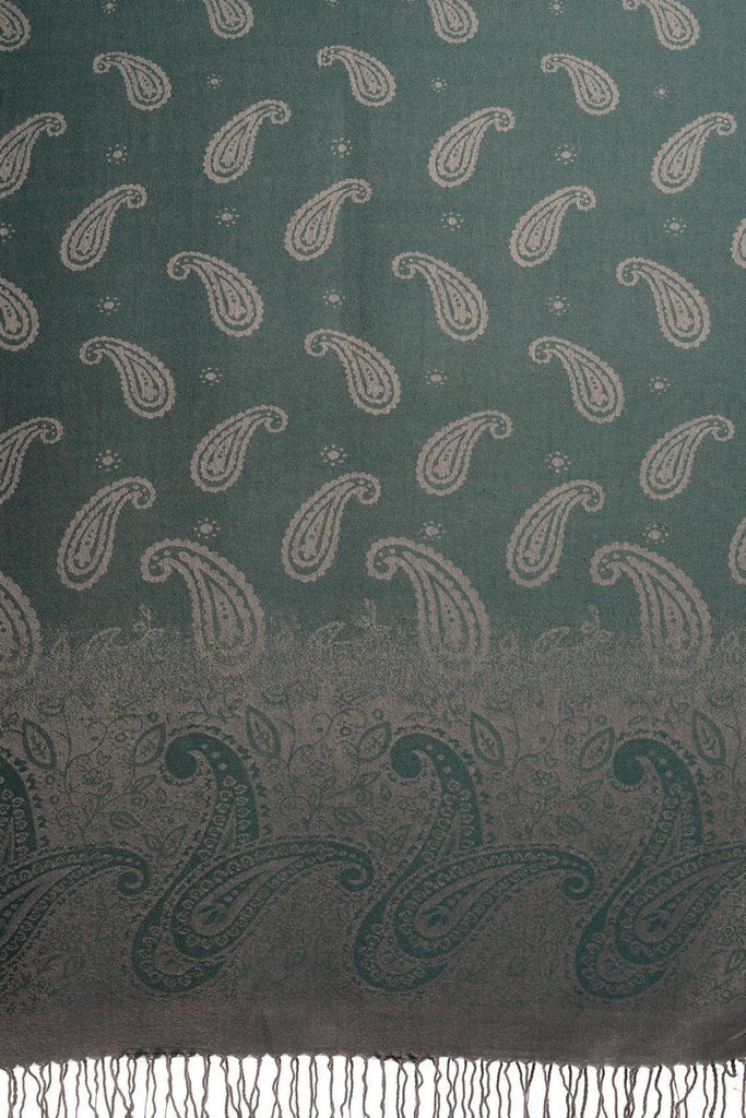 Small Paisley On Teal Blue Pashmina With Tassels - Scarf