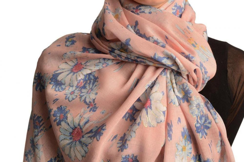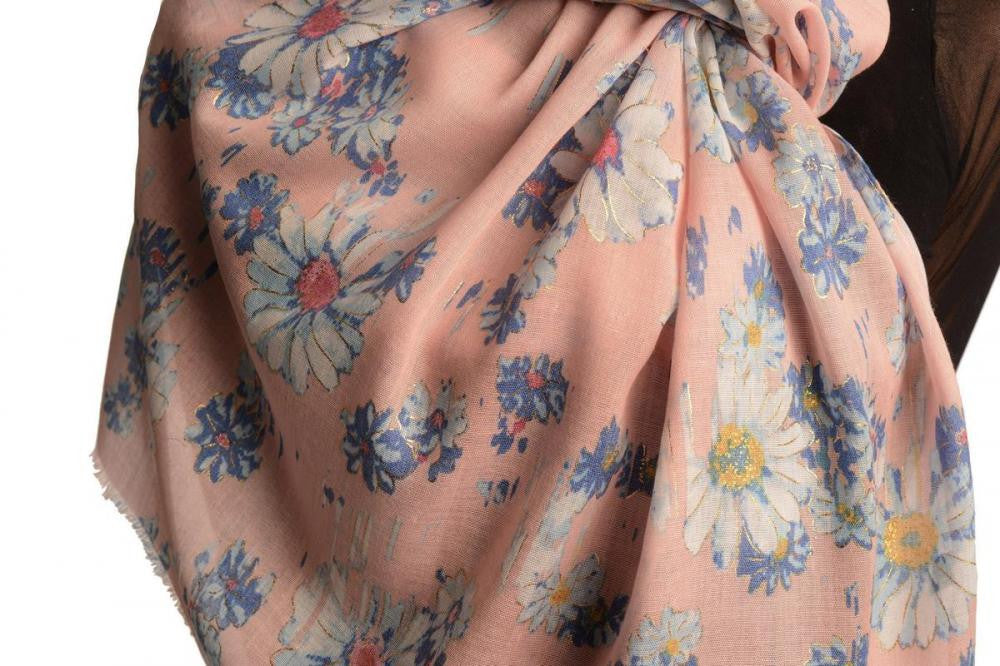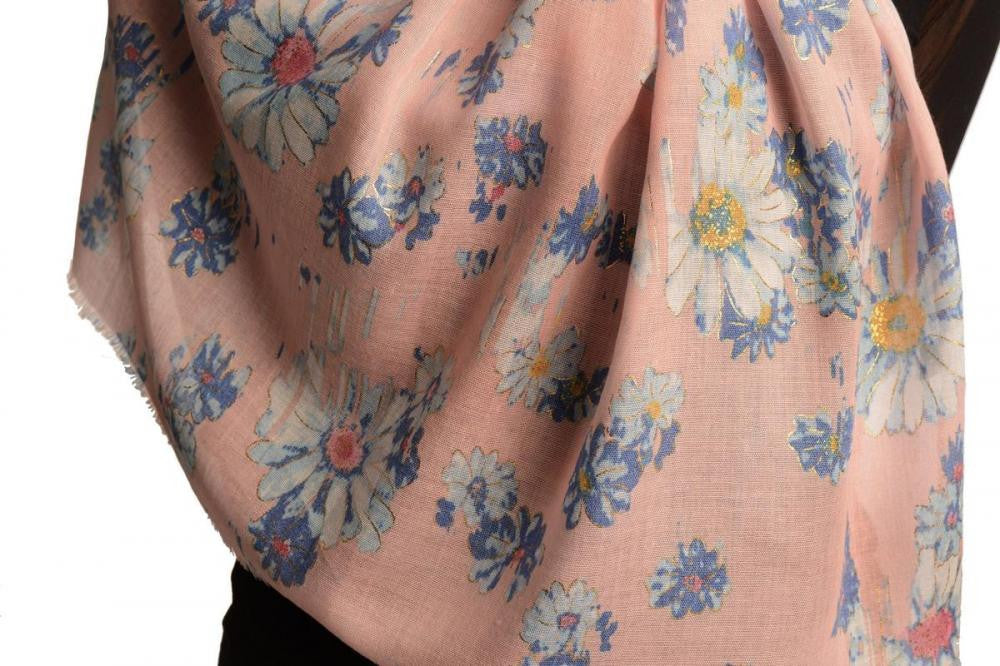Tea Rose With Gold Trim Daisies Scarf