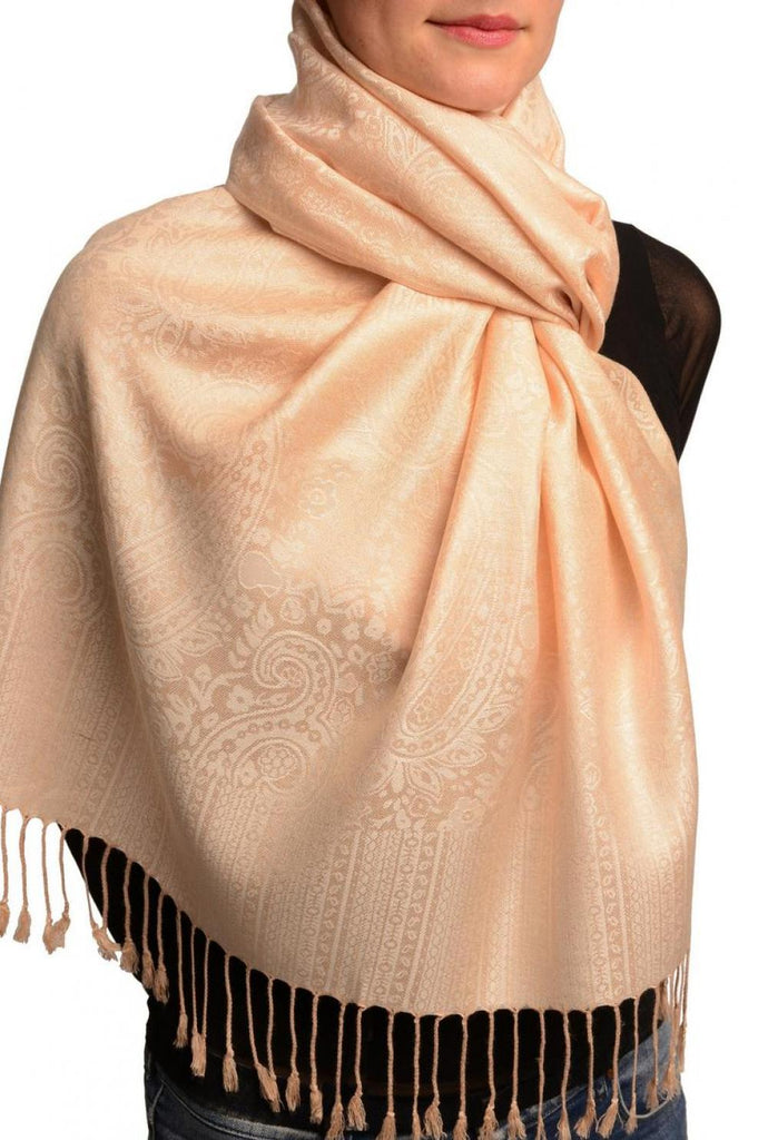 Vanilla Beige Paisleys Pashmina Feel With Tassels