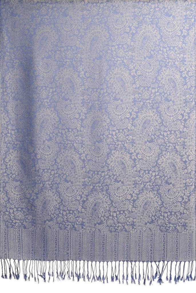White & Dark Blue Paisleys Pashmina Feel With Tassels