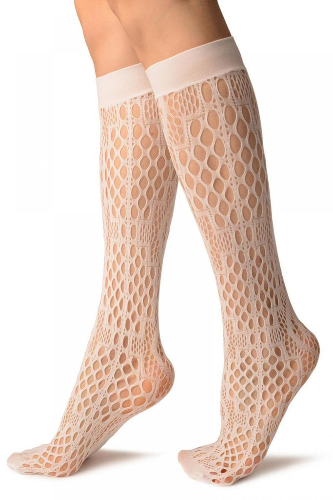 White Medium Wavy Mesh Lace Socks Knee High - Socks