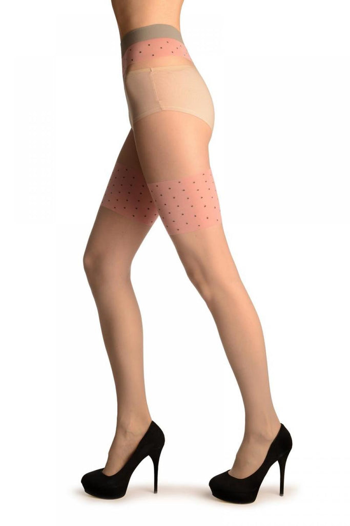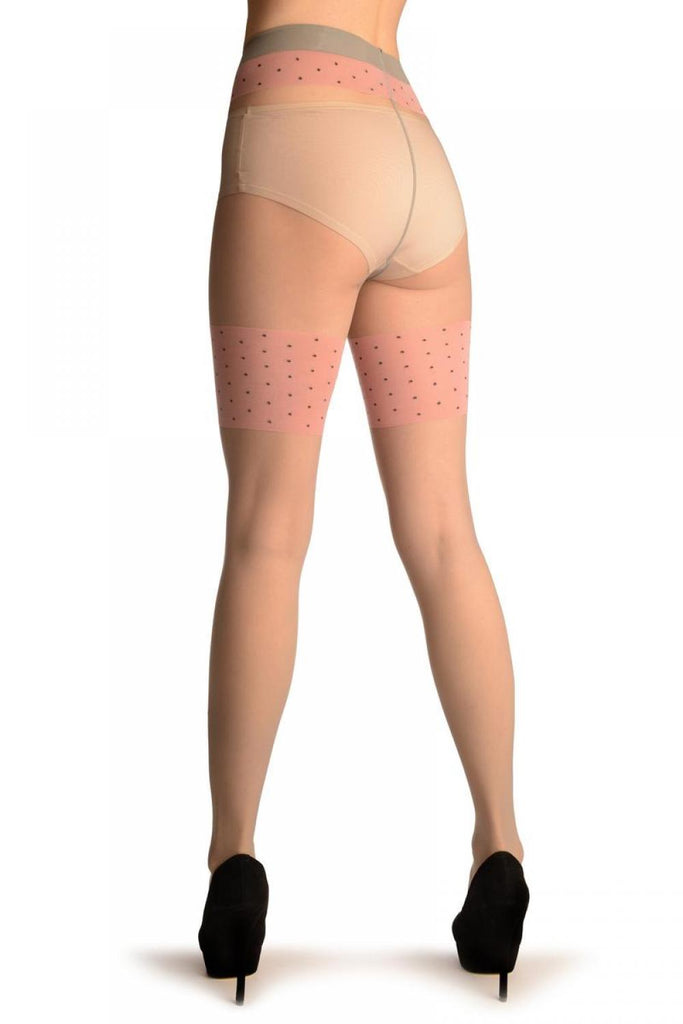 Black Dotted With Lace Garter And Top & Grey Ribbon With Bow 20 Den - Tights