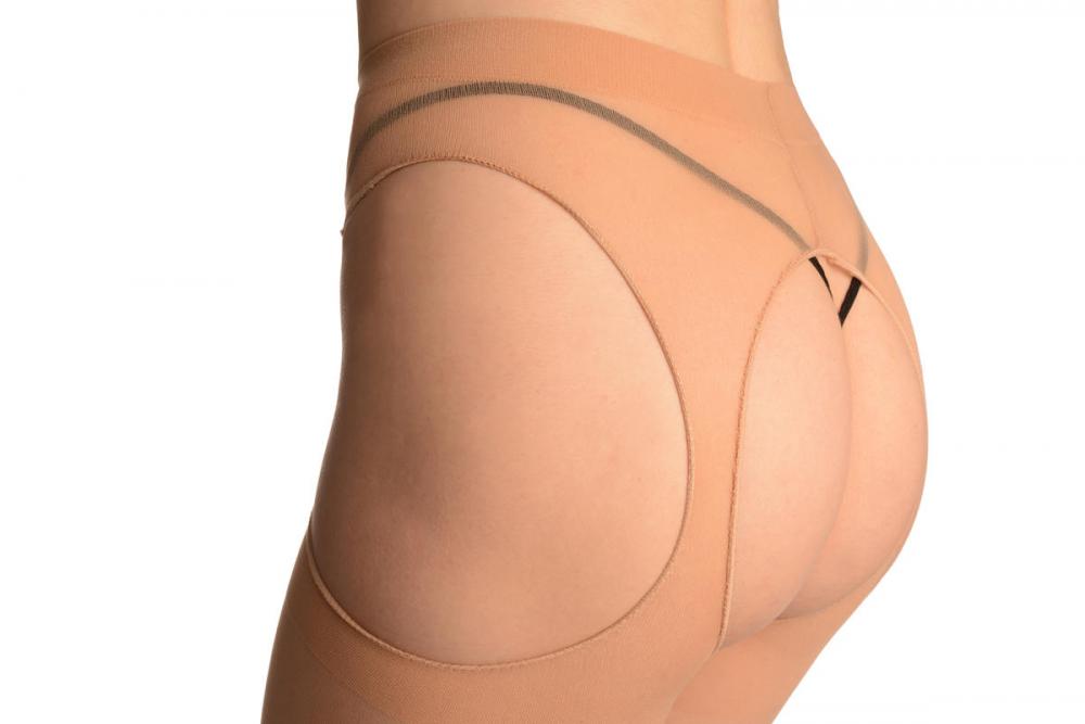 Black Dotted With Lace Garter And Top & Grey Ribbon With Bow 20 Den - Tights